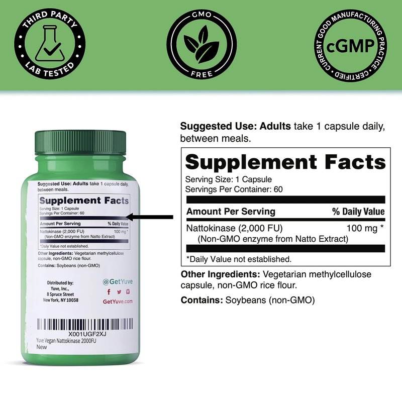 - Viatmin K & Sugar - Free: Unlike other blood health supplements, Yuve Nattokinase does not include K group vitamins that activate blood coagulation and has the opposite effect of nattokinase on the body.