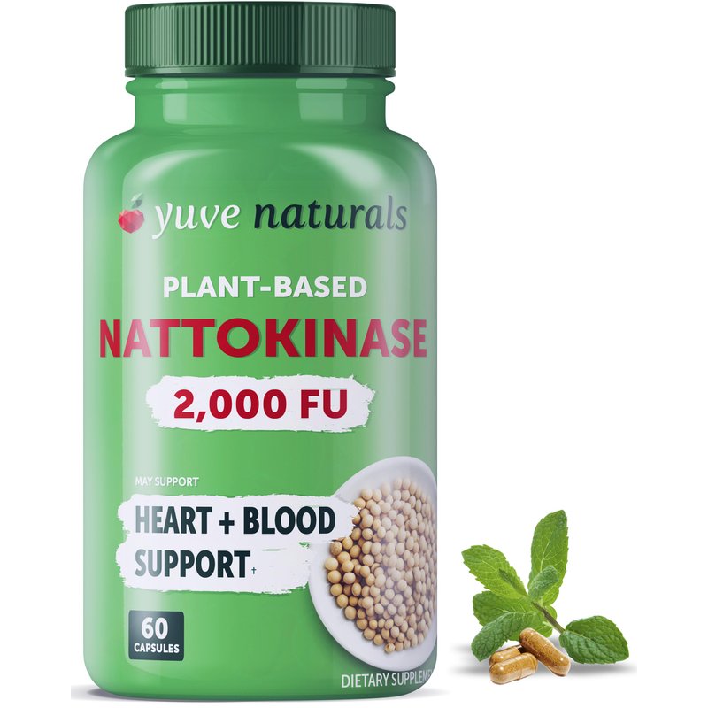 Yuve Nattokinase 2000 FU, Nattokinase Supplement for Cardiovascular Health Support - Natural Blood Thinner - Natokinase Enzyme from Natto Extract, Sugar-Free, Vitamin K Free - 60 Pills, Made in USA