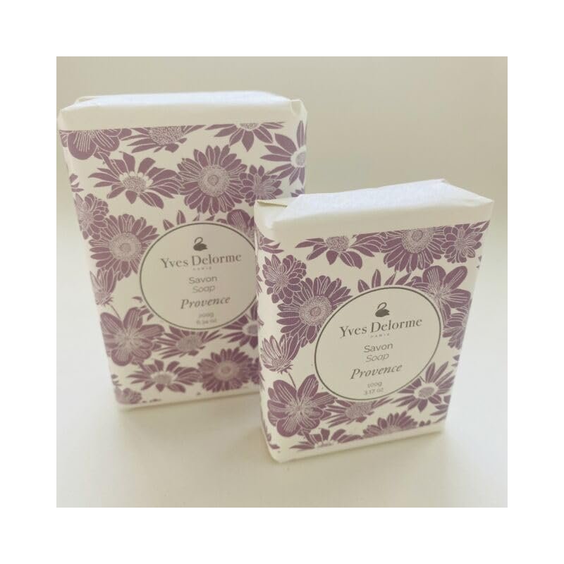 Yves Delorme Provence soap bar Sizes: 100 gram, 200 gram In lavender color wrapper Vegetable based and triple milled Made In France
