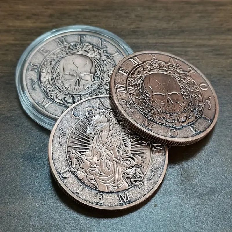 Yvhusk Collectible Coins Memento Mori Medal Carpe Diem Stoicism Souvenior Coins Antique Finish Official Gift for Daily Stoic Practice