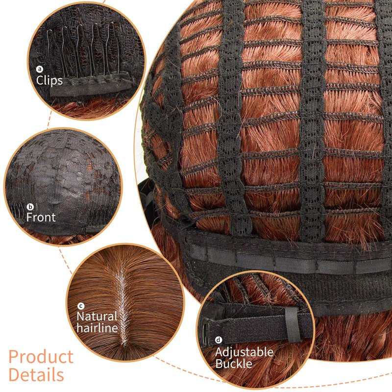 - Wig Cap: Average Cap Size 21"-23".There are two adjustment straps inside the wig, which can be intertwined to a fixed position to suit different head sizes.Daily&Cosplay Use: Very Fashionable curly design with natural looking and pretty natural black hair color. Perfect for parties or daily use