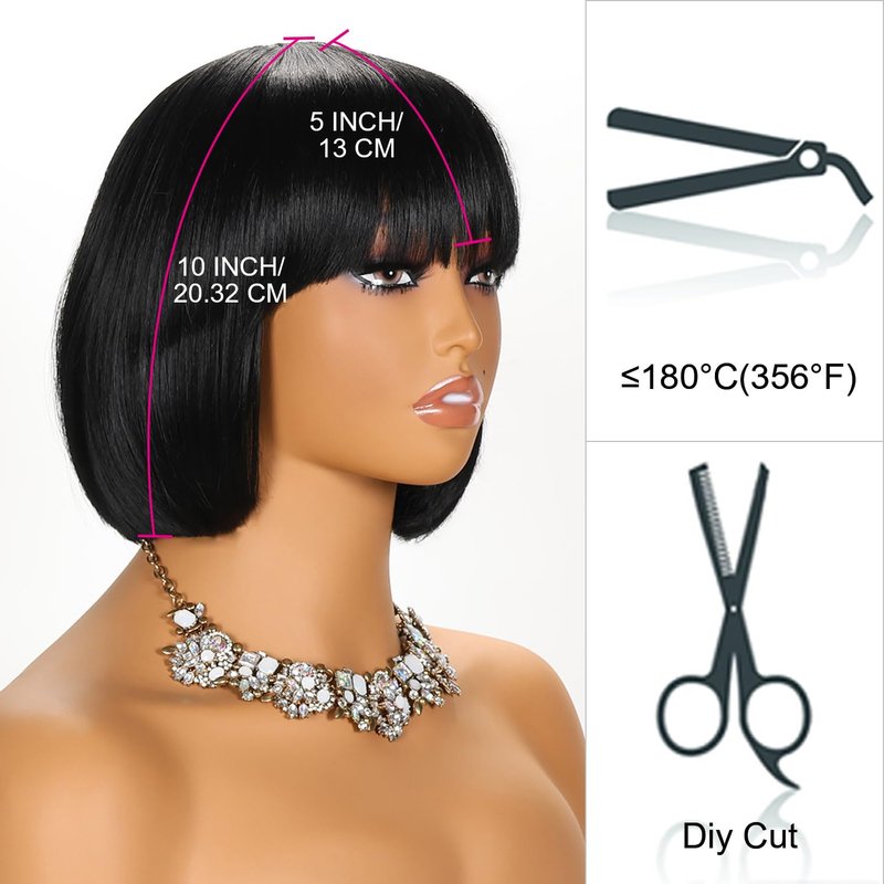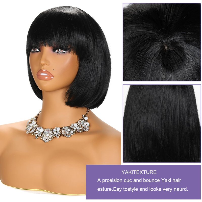 - LIGHT YAKI TEXTURE: Our short bob wigs are specially processed with light yaki texture so it looks and feels like real hair.Bob wig for women makes you charming, and short wig black design make the short wig bob easier to modify your face and cover your hairline. Short straight wig are not prone to change in shape during shipping. (For short bob wig you can to trim them yourself to make bob wig with bangs more suitable for you.)