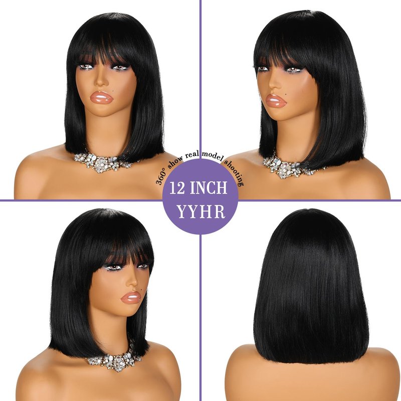 YYHR Short Bob Wig With Bangs 12" Light Yaki St...