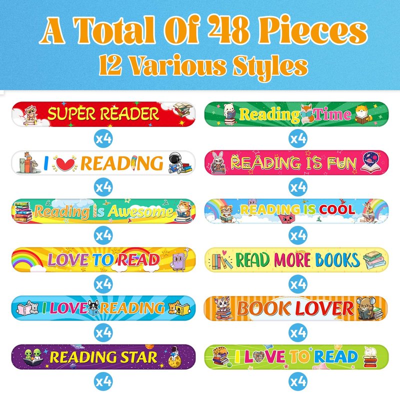 <b>48 PCS Reading Book Slap Bracelets for Kids</b><br>
