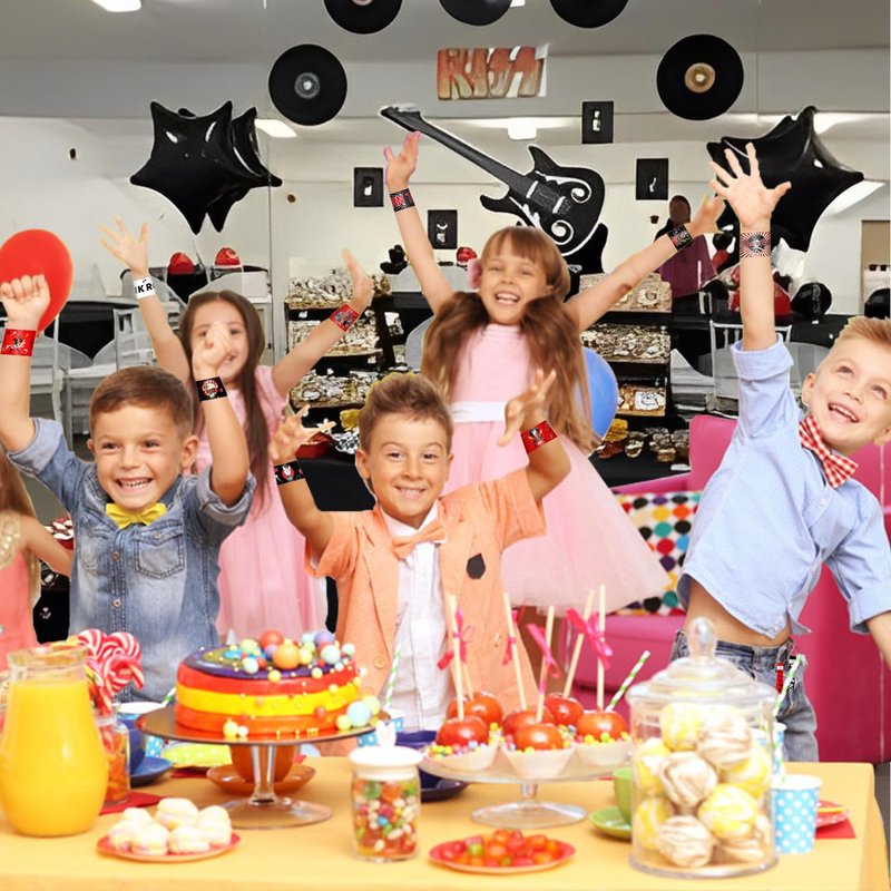 - Rock and Roll Party Favors: The rock themed slap bracelets of these slap wristbands are inspired by the rock star concert, concert, rock festival, full of assortment of cool rock style, add happiness to party and help everyone in the party was deeply immersed in the warm atmosphere of rock party
