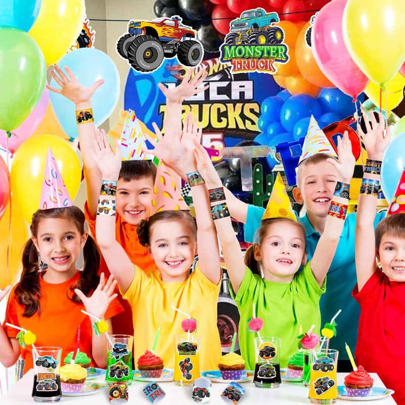 Monster truck slap bracelets and monster truck stickers prefect for monster truck party favors, monster truck birthday decorations, monster truck party, Children's Day giveaway, baby showers, boy school classroom rewards, goodie bag fillers, etc. These monster truck party decorations will be great gifts for your party.