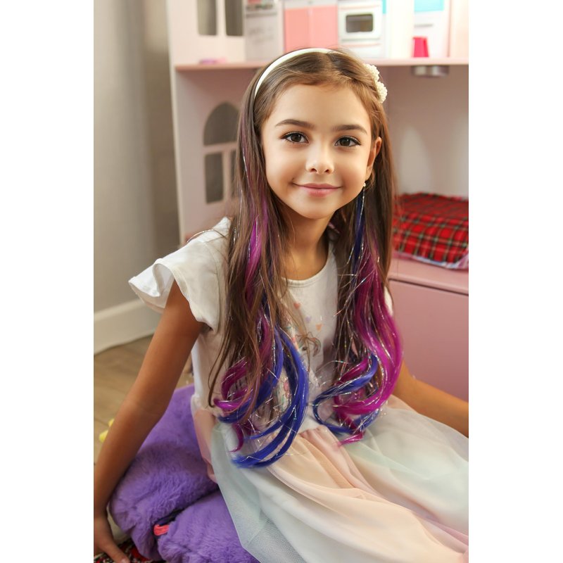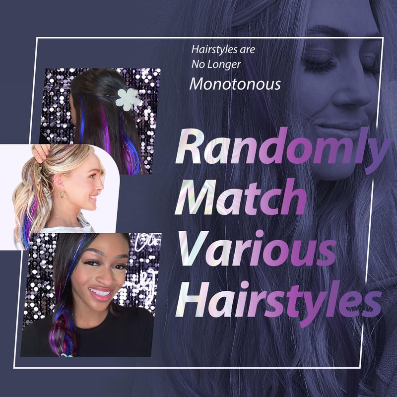- With the sparkly clip in tinsel hair extensions on your hair, you can create straight, curly, wavy, hair highlighting, braids or many other pretty hair styles as desired. Awesome fairy mermaid hair accessories that you should not miss.
