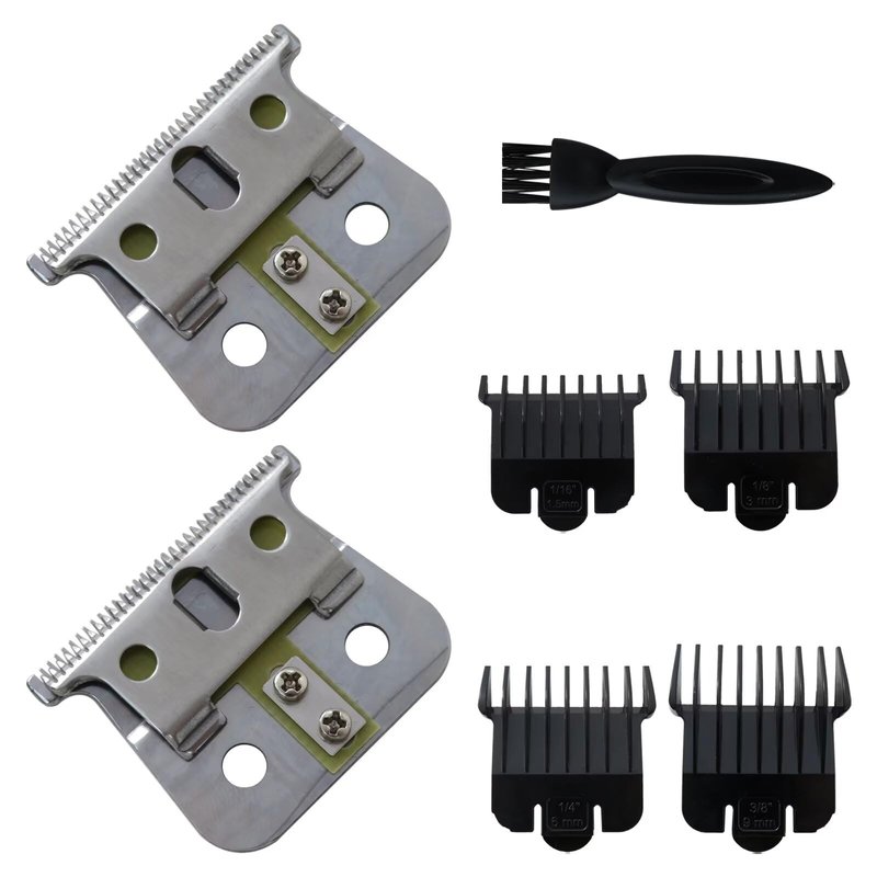 Zafina-UP 2 Pack T Outliner Blades for Andis T Outliner Trimmer, for GTX Replacement Blade with Brush, Steel T Blade Set with 4 Guards Guides for Hair Clippers Model #04710/04521, Silver