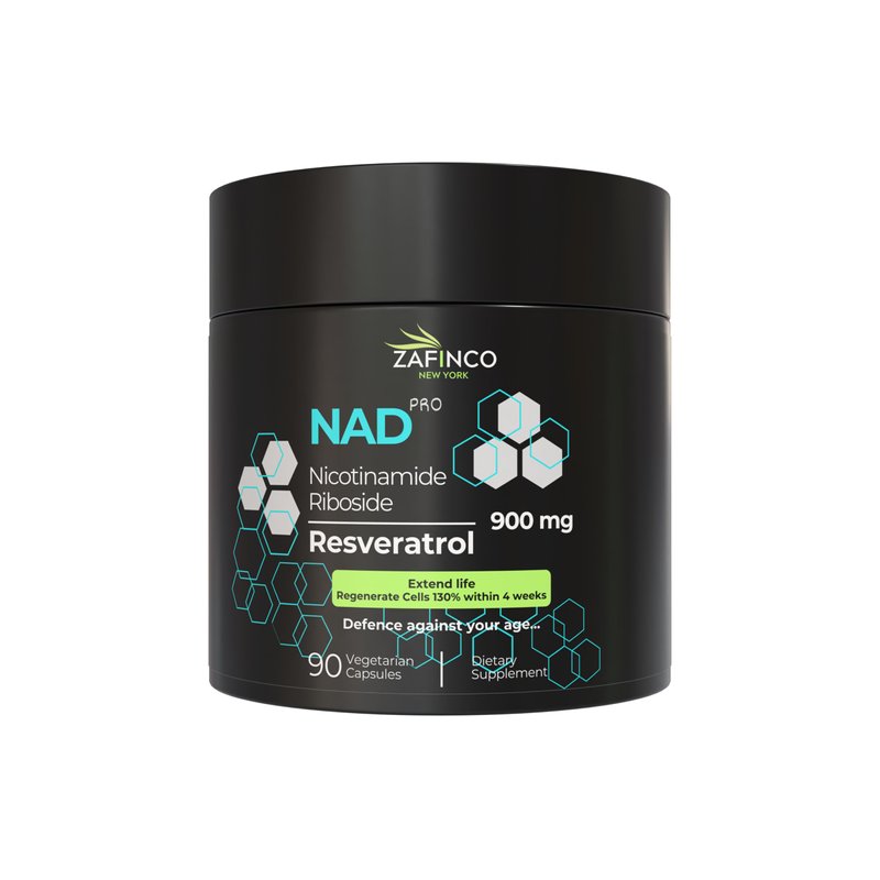 Experience the ultimate in longevity and wellness with ZAFINCO-NAD PRO, a powerful supplement formulated to support extended life and defense against AGE (Advanced Glycation End-products). Packed with 900 mg of Resveratrol and a potent blend of Nicotinamide Riboside, this advanced formula provides comprehensive support for energy, brain health, muscle function. With 90 vegetarian capsules, ZAFINCO-NAD PRO is your key to optimal health and vitality.