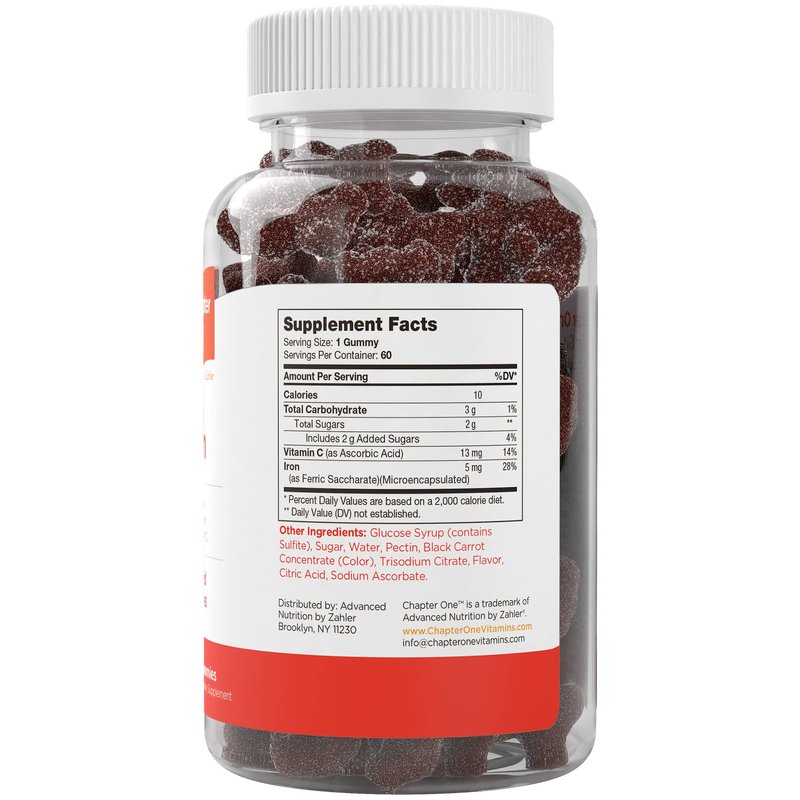 - DELICIOUS IRON GUMMIES - Each chewy fruit flavored gummy contains 5mg of blood building Iron and Vitamin C to support better absorption and easier digestion. Supplement your iron easily with one daily gummy taken with food.