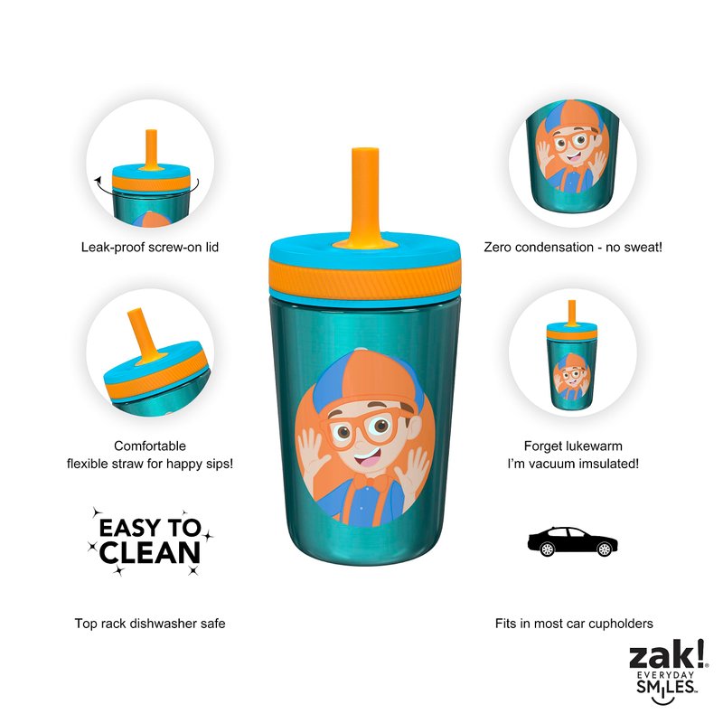 Zak Designs Blippi Kelso Toddler Cups For Travel or At Home, 12oz Vacuum Insulated Stainless Steel Sippy Cup With Leak-Proof Design is Perfect For Kids