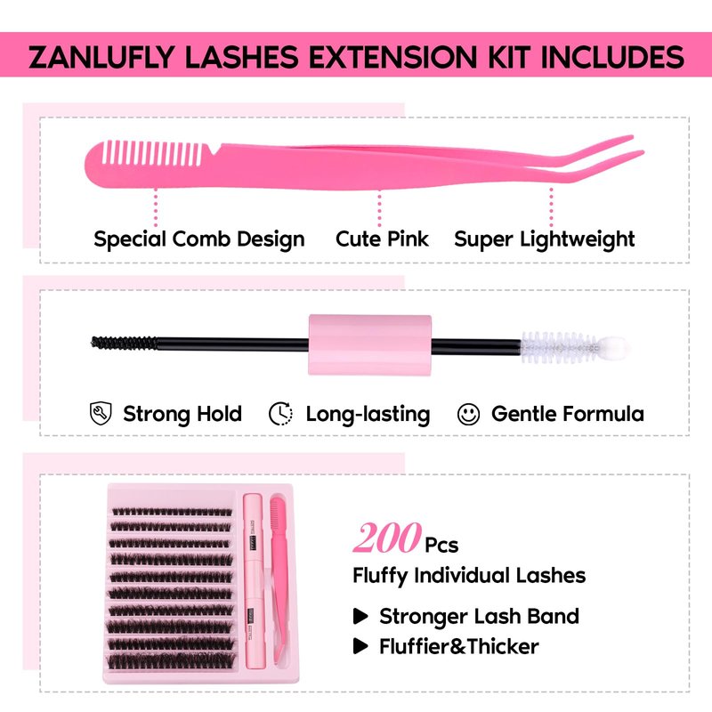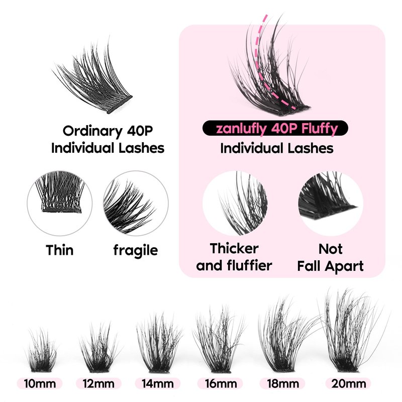 - 20MM Fluffy Lashes Extension Kit:Subverting the traditional natural individual lashes, zanlufly carefully developed thick and fluffy 20MM individual lashes, bringing you a brand new experience.