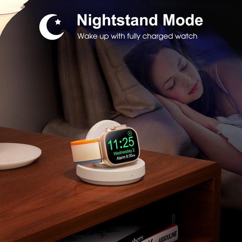 - Charging with Nightstand Modes: The watch charging stand supports Apple Watch in nightstand mode, bedside time-telling piece, also could be an alarm clock. (Tips: before using the nightstand mode function, please turn on the nightstand mode in your watch settings in advance.)