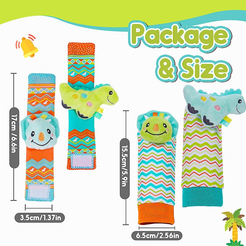 - Baby Sensory Toys: Baby wrist and foot rattles for infants make soft bell and crinkle sounds when shaken or touched, helping hearing development. Bright colors and high-contrast patterns help eye-tracking skills and stimulating visual development. Infant toys 0-6 months encourages early exploration and perception of the world