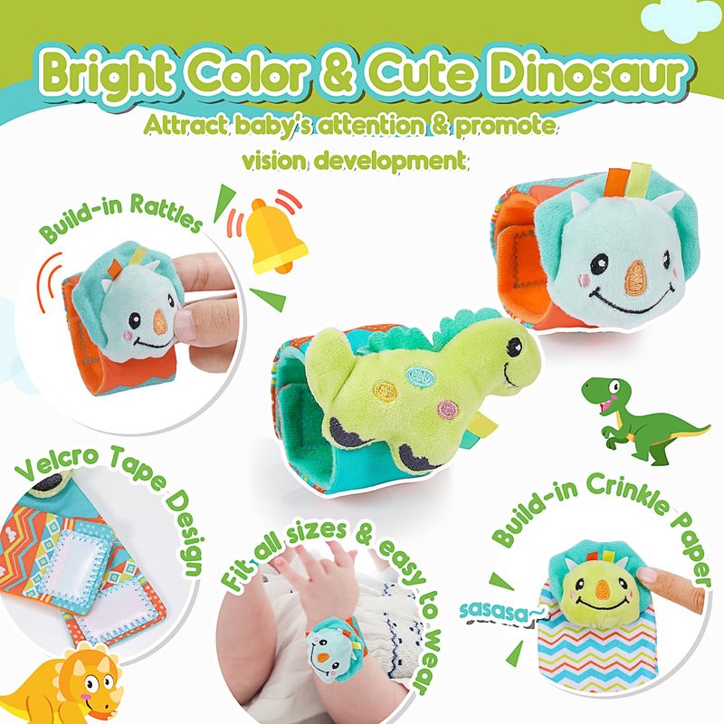 ZapWhiz Baby Infant Rattle Socks, 3 4 5 6 Month Old Baby Toys Wrist Rattles for Babies 0-6 Months Newborn Baby Learning Sensory Toys 3-6 Months Brain Development Toys Baby Boy Shower Gifts Dinosaur