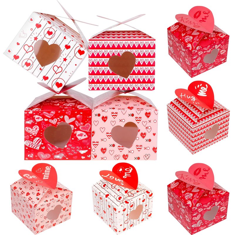 - Size information: The desserts valentines boxes are approx. 10 x 10 x 7.5 cm / 4 x 4 x 3 inch in a square shape, enough space to hold your small biscuits cakes candies or cookies; packing your cupcakes, desserts, etc., with these lovely boxes will make your food more appealing,cupcakes wrappers make a welcome favor for any event, can also be used as takeaway packaging for coffee shop and bakeries. It is very suitable for distributing to children. Children will love it!