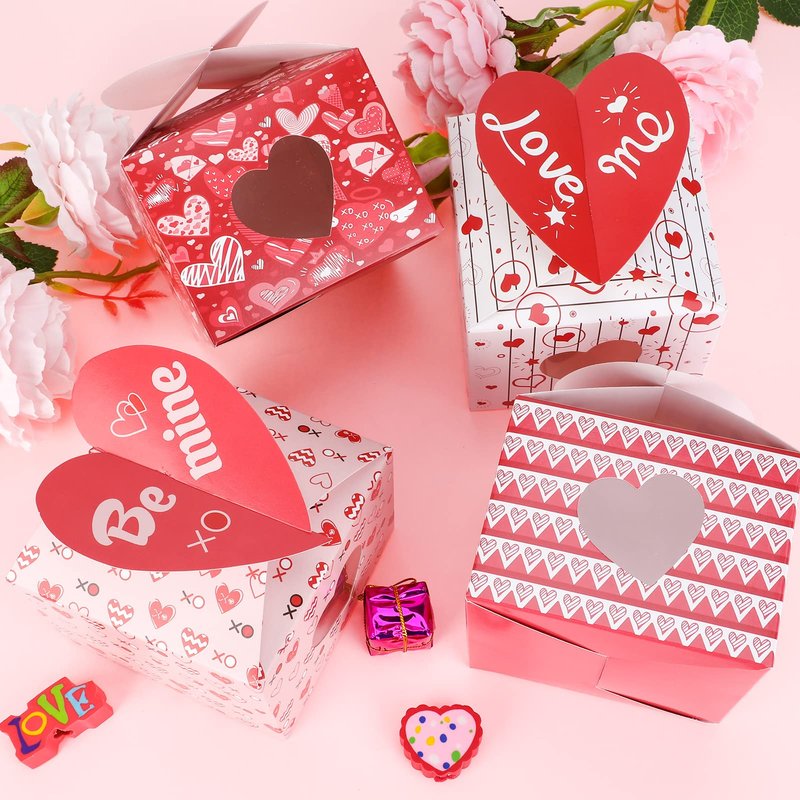 - The package includes- a total of 12 love carton boxes, which are divided into 4 styles, 3 for each style. Sufficient quantity for your daily use; in classic valentine themed color, using these valentines boxes to pack your gift can add sweetness and romance,good package makes your desserts more appetizing
