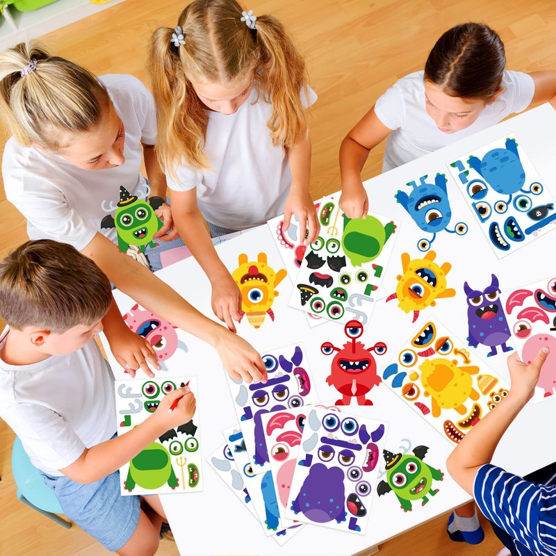 - 36 Sheets, 6 different face- girls boys Monster party games sticker decor,each sheet has different designs of eyes, mouths and even eyebrows to make whatever silly or cute faces your kids like. Enjoy creativity and fun to your party celebration for birthday and house party, group activity gift, art class or other activities. Its perfect for rewards, birthday gifts, festival gifts and valentines party favors.