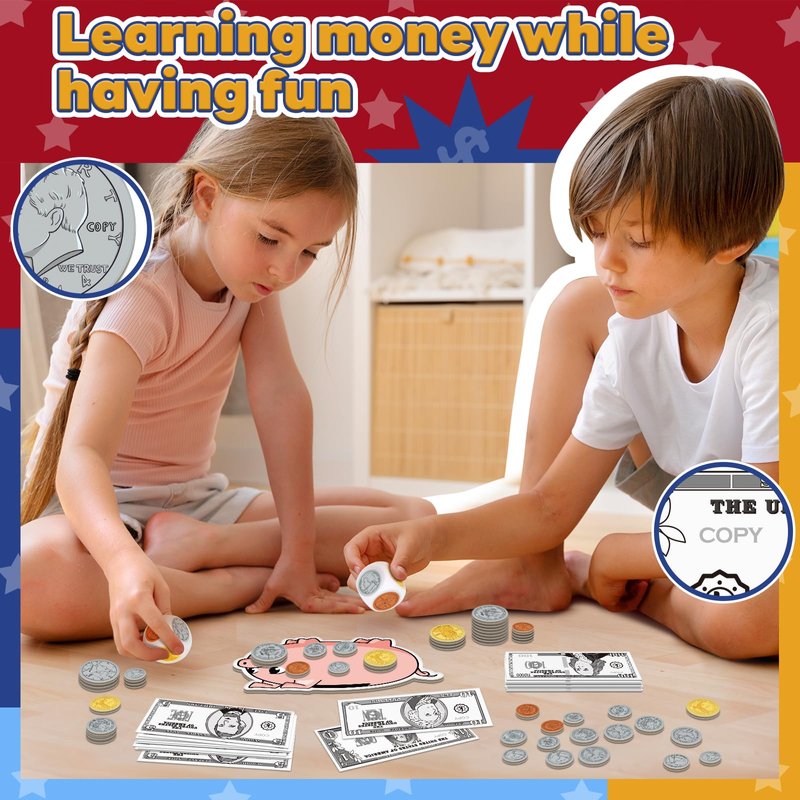 - Math Skill Development: Through fun money games and pretend play, kids can develop counting, addition, subtraction, and making change skills