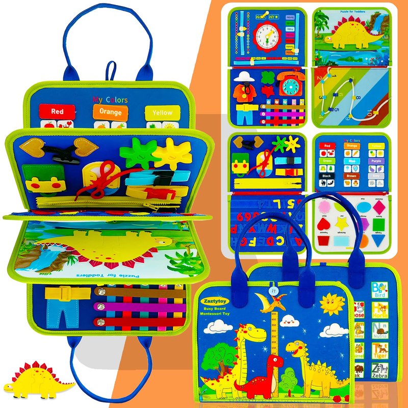 - Bright Colors & Playful Dinosaurs: The vibrant dinosaur design and interactive elements of this toddler busy board keep little ones engaged and entertained, making learning fun. Ideal for capturing their attention during quiet time, travel, or at home, this busy book for toddlers is sure to be a favorite