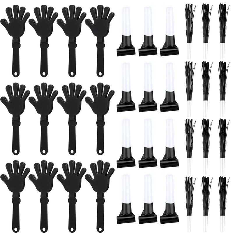 ZCYSRLQIN 36 Pcs New Years Eve Party Noisemakers Supplies New Year Party Kit Includes 12 Hand Clappers 12 Plastic Blowers 12 Metallic Fringed Party Blowers for 2025 New Years Party Supplies (Black)
