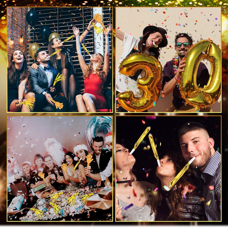 - Wide Applicable Scenarios: ours New Years party Supplies can produce funny and cheerful sounds and liven up the party atmosphere, suitable for various celebrations such as kids birthdays party, new year Eve, carnivals, fiestas, sporting events, party decorations and more