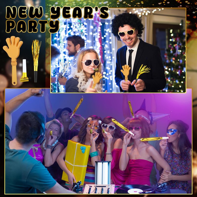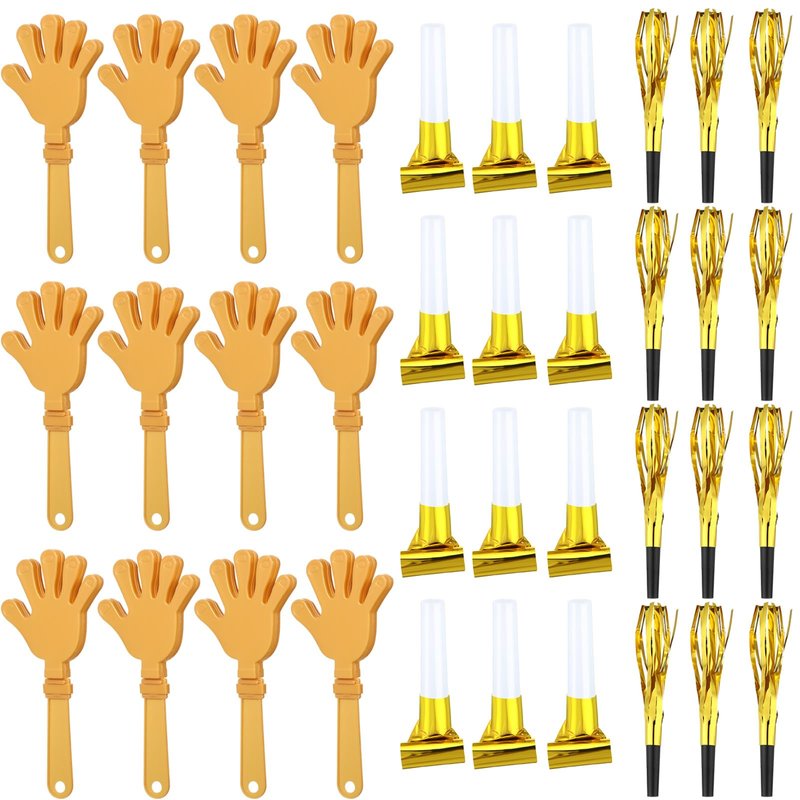 ZCYSRLQIN 36 Pcs New Years Eve Party Noisemakers Supplies New Year Party Kit Includes 12 Hand Clappers 12 Plastic Blowers 12 Metallic Fringed Party Blowers for 2025 New Years Party Supplies (Gold)