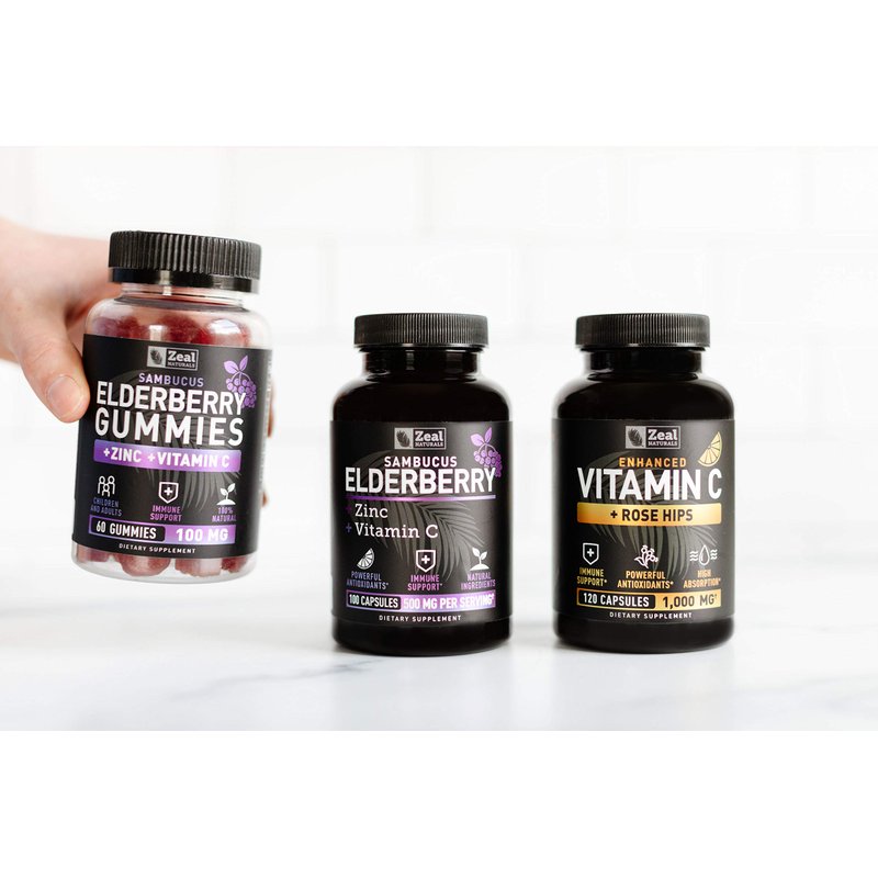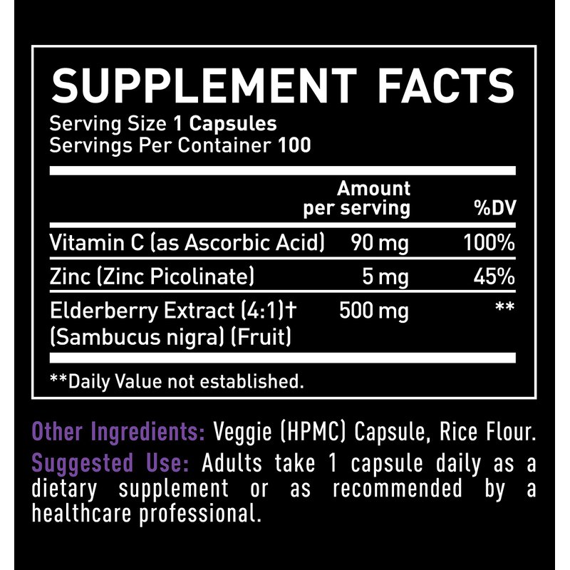 - Maximum strength formula. Formulated for maximum immune boosting properties with 100% daily value of Vitamin C, 45% Zinc, and 500mg of Sambucus Black Elderberry extract.*