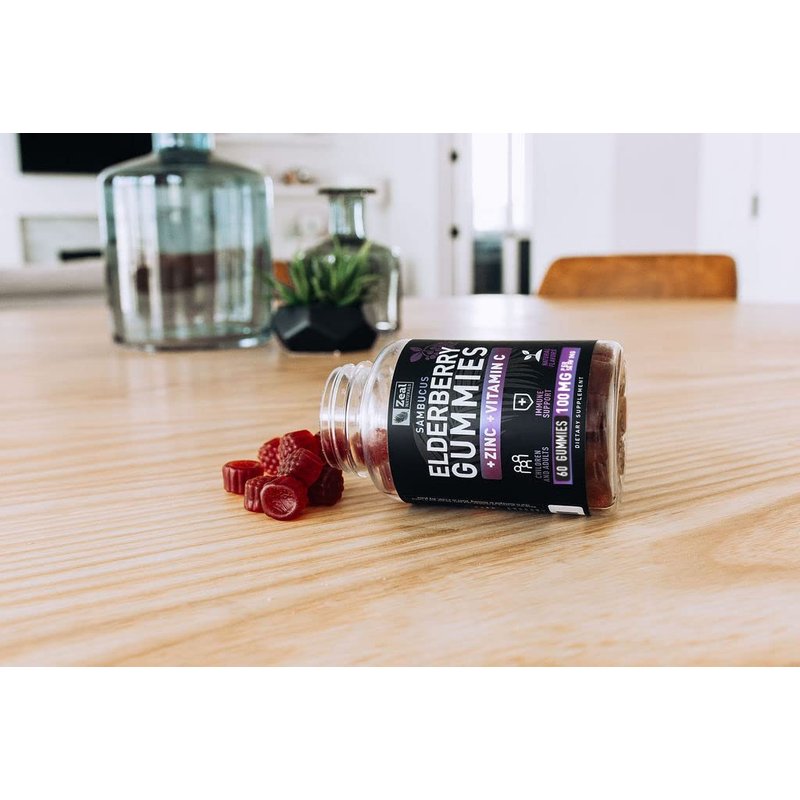 Zeal Naturals Sambucus Elderberry Gummies + Zinc + Vitamin C - Daily Supplement for Children & Adults - Easy to Chew Vitamin Gummies - 100 mg Max Serving of Elderberry - 60 Count