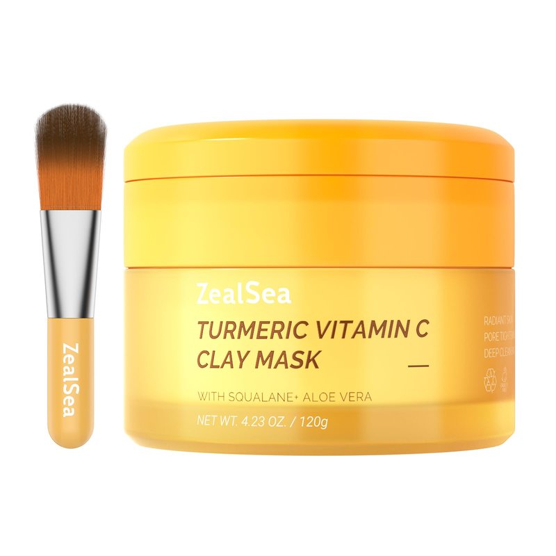 ZealSea Turmeric Clay Mask for Face with Vitamin C - Mud Mask for Face Clay Mask for Blackheads and Pores Face Mask Skin Care Facial Skincare, 4.23 Oz