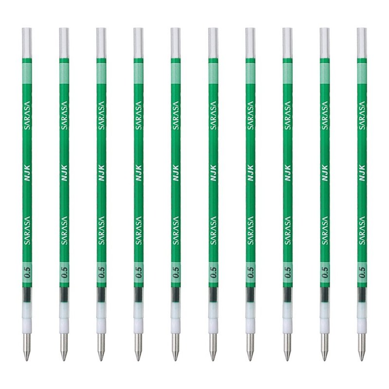 Zebra BRNJK5G Prefer Sarasa NJK-0.5 Ballpoint Pen Refills, Green, 10 Pieces