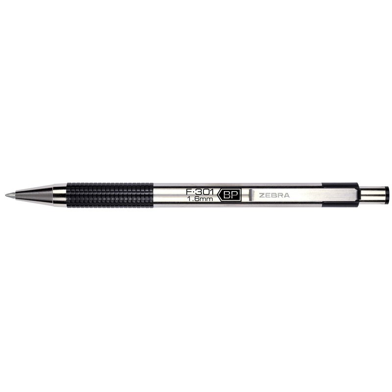 - This 12-pack of sturdy ballpoint pens is refillable with Zebra Pen F-Refill; Built for boardrooms, courtrooms, medical settings, and personal use, the F-301 adds personal style to your work