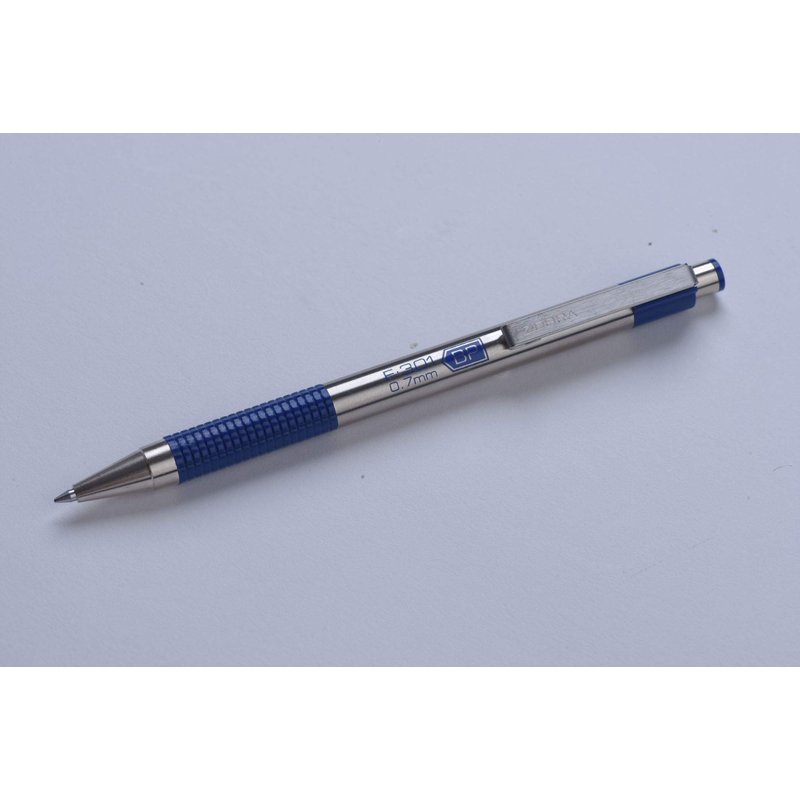 Zebra Pen F-301 Retractable Ballpoint Pen, Stainless Steel Barrel, Fine Point, 0.7mm, Blue Ink, 12-Pack