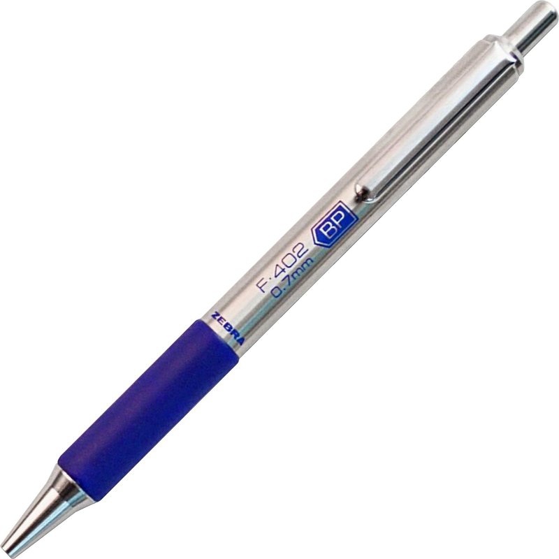 Zebra Pen F-402 Retractable Ballpoint Pen, Stainless Steel Barrel, Fine Point, 0.7mm, Blue Ink, 1-Pack