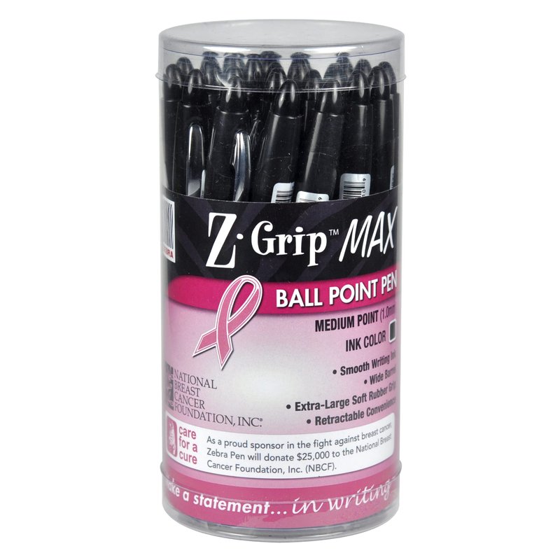 Zebra Pen Z-Grip MAX BOLD Retractable Ballpoint Pen, 1.2mm, Black with Pink Ribbon, 24-Pack (32577)