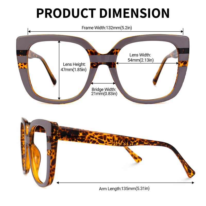- [PRODUCT DIMENSION] Lens Width: 54mm (2.13") | Lens Height: 47mm (1.85") | Bridge Width: 21mm (0.83") | Frame Width: 132mm (5.2") | Arm Length: 135mm (5.31").