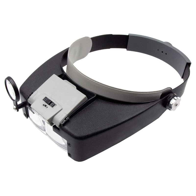 - The Zega headband magnifier provides three acrylic, multi-depth, magnifying lenses, each with a rigid coating designed to protect against cracking. Two of the lenses offer 1.5X magnification and the third offers 7X magnification, providing magnifying intensities at multiples of 1.5, 3, 8.5 and 10.