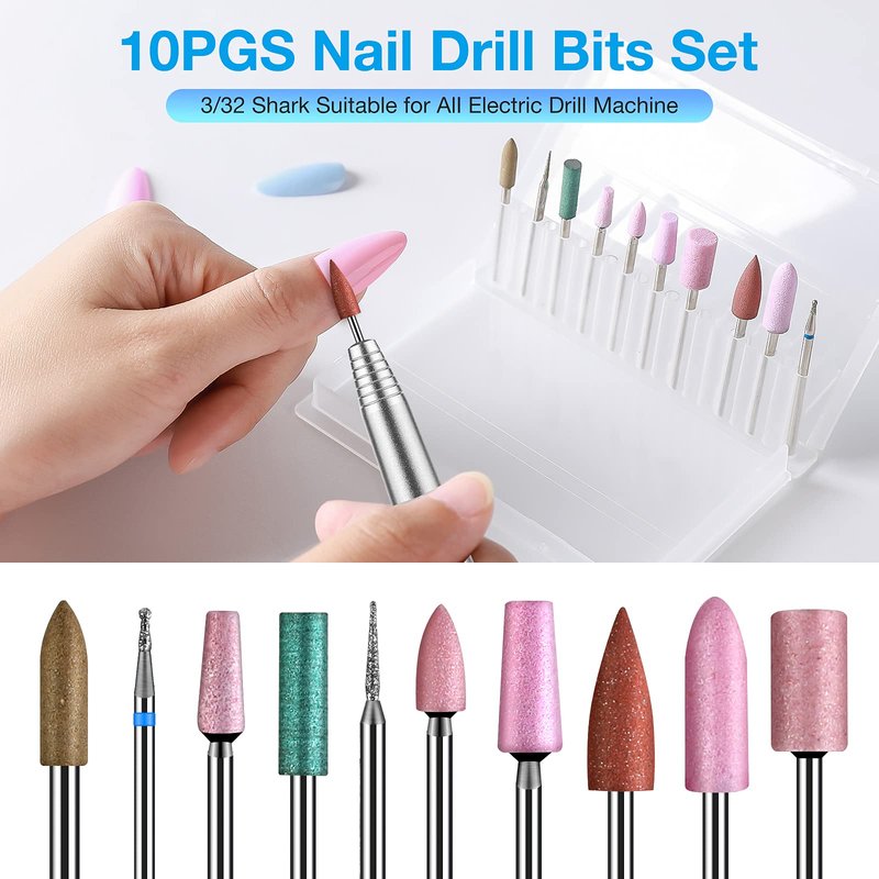 10 Pcs Ceramic Stone Nail Drill Bit 3/32" Rotary Burr Cuticle Clean Mill Manicure Pedicure Tools Nail Drill Accessories Set Features: