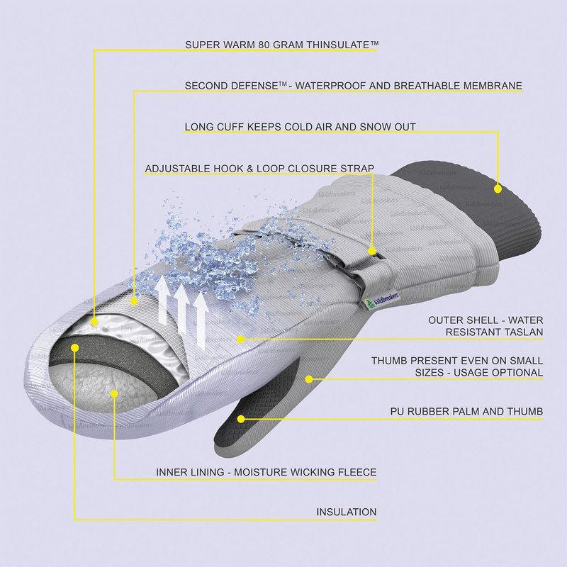 - COLD WEATHER READY Winter snow is here! And so is the cold weather! Make sure your kids are ready with Wildbreakers by Zelda Matilda’s warmest mittens. Made to the highest quality standards these mittens are ready to take on whatever winter play you can think of! Skiing, snowboarding, even snow fights! Most of all they are perfect for everyday wear!