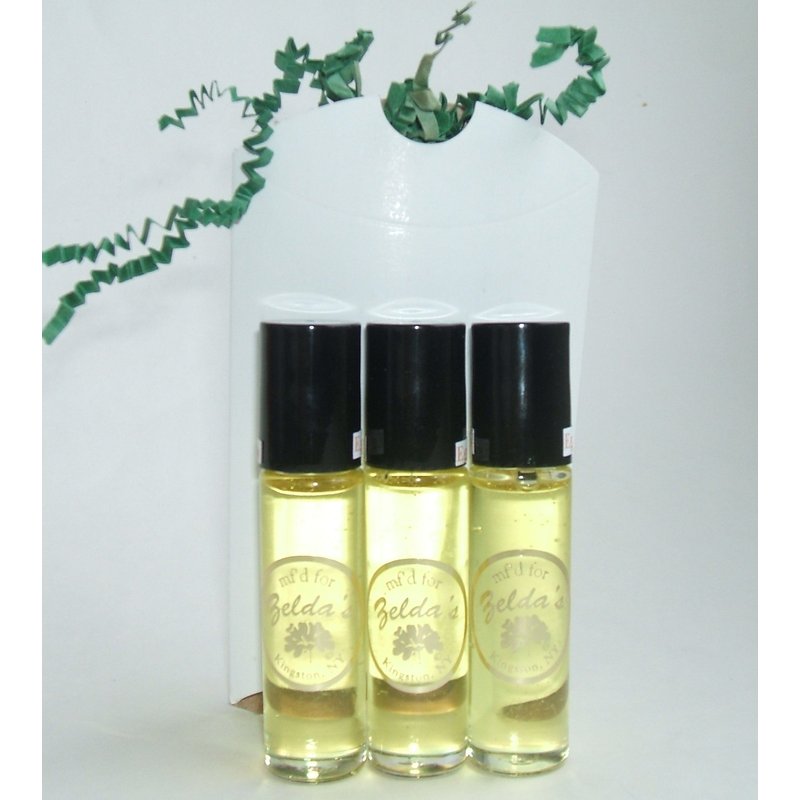 Zelda's Famous Formula Body Oil since 1985! Nubian Musk is a rich and glamorous fragrance combines the woodsy fragrances of sandalwood and oak-moss, with African spices and musk for a sexy aroma. Egyptian Vanilla is gives musk a sweet twang a creamy jazzy snappy but yet relaxing clean scent. Zelda's Vanilla is a clean, sweet and rich smelling one! All three bottles of 1/3 oz roll-on can be dabbed a little and on the wrist and worn interchangeably or together ! nice gift pouch ! refillable roll on bottle! Oil is the first ingredient perfumers add to cologne, oil lasts longer on your skin ! Oil wears with warmth on your wrist to release the top, bottom and middle notes for hours in a day. How to use your body oil. Apply 30 minutes early on pulse points before going out to allow the roller ball application directly on your skin to mix with your chemistry of your skin to let it work its magic to bring out the top, middle and bottom notes to enjoy. Also apply to a cloth or bead and let dry to place in a room or car.