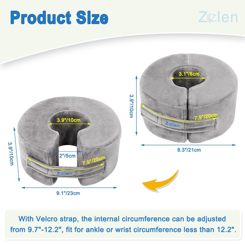 - DIMENSIONS - 8.3" * 8.3" * 3.9", the internal circumference can be adjusted from 9.7"-12.2". 【Note】The Foot and Ankle Support Pillow is vacuum-packed. Please allow it about 48 hours to expand fully.