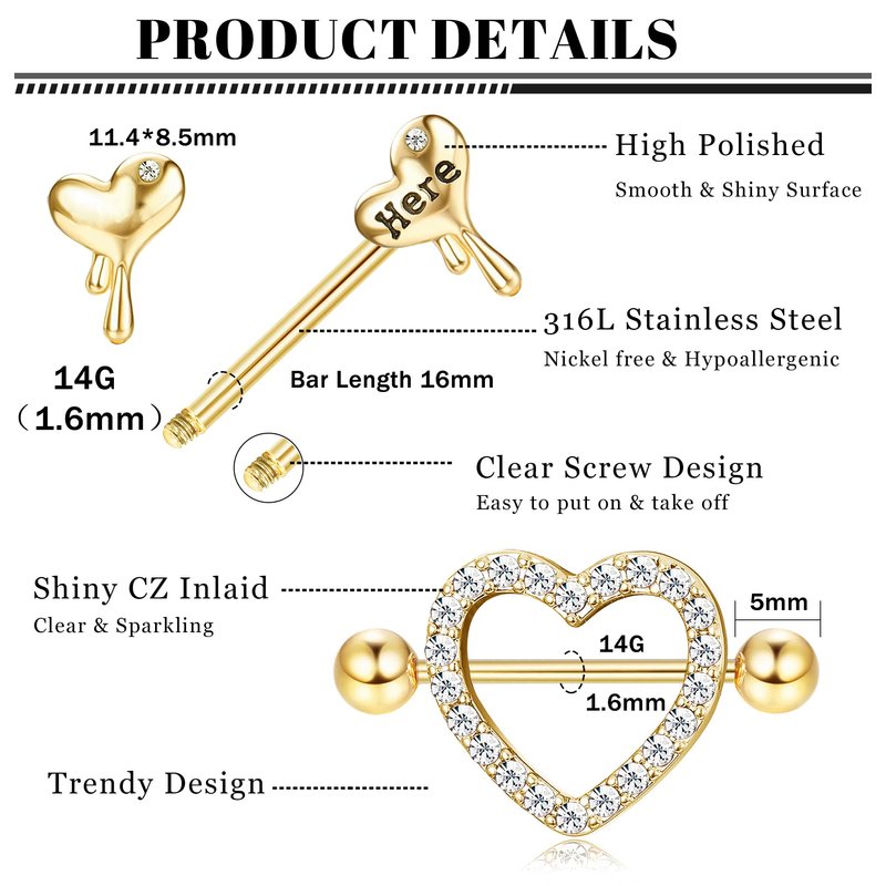 - 【Chic Gift】All the Nipple Piercing Jewelry are Packaged in a Small Box. Perfect as a Small Gift to Your Girlfriend, Wife, Family, Friends, as Birthday Gifts, Anniversary Gifts, Christmas Gifts, Thanksgiving Gifts, Graduation Gifts, Congratulation Gifts Etc.