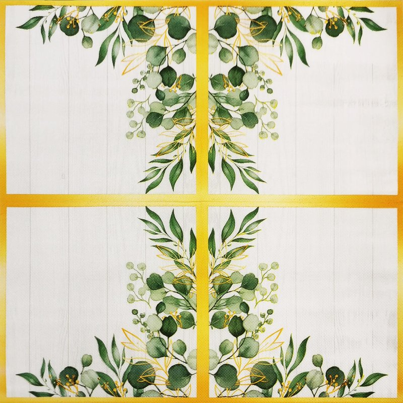 Zelten Colored Paper Party Napkins, 20 Count Shabby Chic for Wedding, inner, Tea Party, Decoupage, Green Leaves
