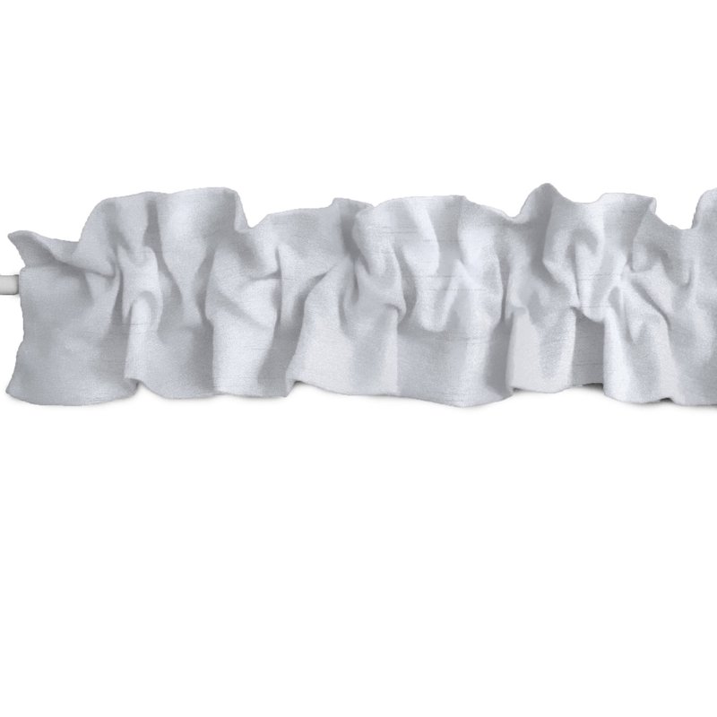 Solid colored faux dupioni silk topper valance. Top and bottom ruffle. Please note that ruffles are created when the material is bunched together; take this into consideration when purchasing the appropriate size. Multiple Sizes and Colors Available. Easy Care Machine Washable. Made in America.