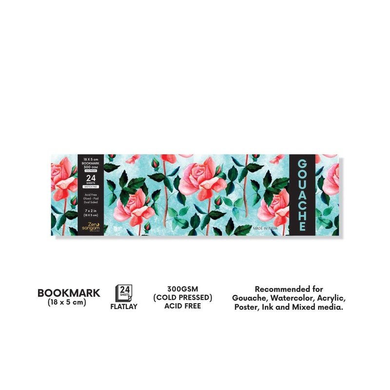 Zen Sangam Artists’ - Bookmark Gouache Glued Sketch Paper Pad - 300 GSM - Cold Pressed - (24 Sheets) - Rough Grain Surface - Size (18x5cm) - Gouache Book