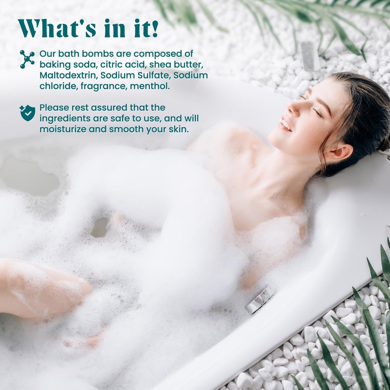 - ★[Natural Ingredients] Our bath bombs are composed of shea butter, sodium bicarbonate, citric acid, sodium carbonate and polyethylene glycol. The ingredients are safe to use, and will moisturize and smooth your skin. Our manufacturer has been assessed by the NSF and complies with the Cosmetic Good Manufacturing Practices from the U.S Food and Drug Administration(FDA).