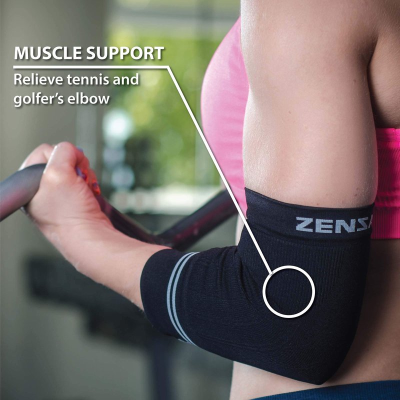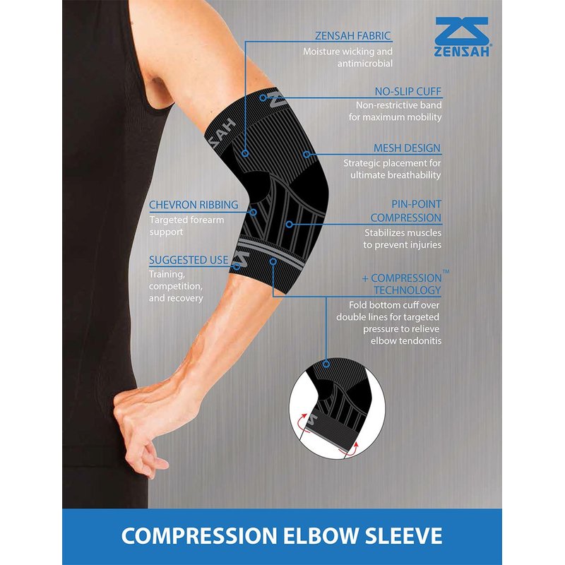 - Injury Prevention: The Zensah Elbow Sleeve helps to prevent injuries by stabilizing the muscles in the elbow area. This prevents injuries from developing and micro-tears of muscles. The elbow sleeve also has chevron ribbing for enhanced support to the forearm area.