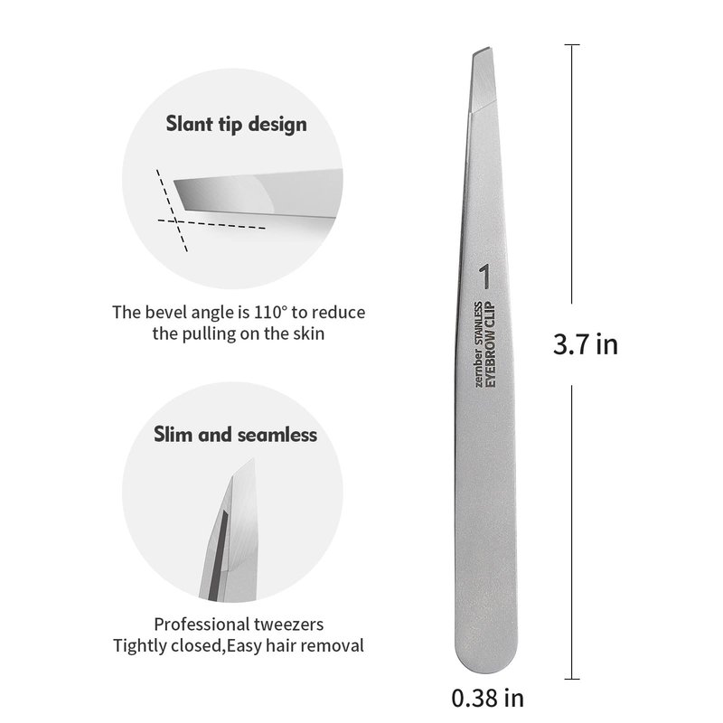 These precision tweezers are high quality and inexpensive. This tweezer has a clean and attractive design with one angled tip and one flat tip. Whether you are tweezing women's facial hair or men's hair, it will do the job.Zernber precision tweezers are made of high quality stainless steel and feel comfortable in your hand. These tweezers are durable, easy to clean, won't rust and have a long life. These tweezers allow you to properly trim your eyebrows, face and hairline and are guaranteed to help beautify your appearance. With proper eyebrow trimming, your skin and overall appearance will be smooth and beautiful.