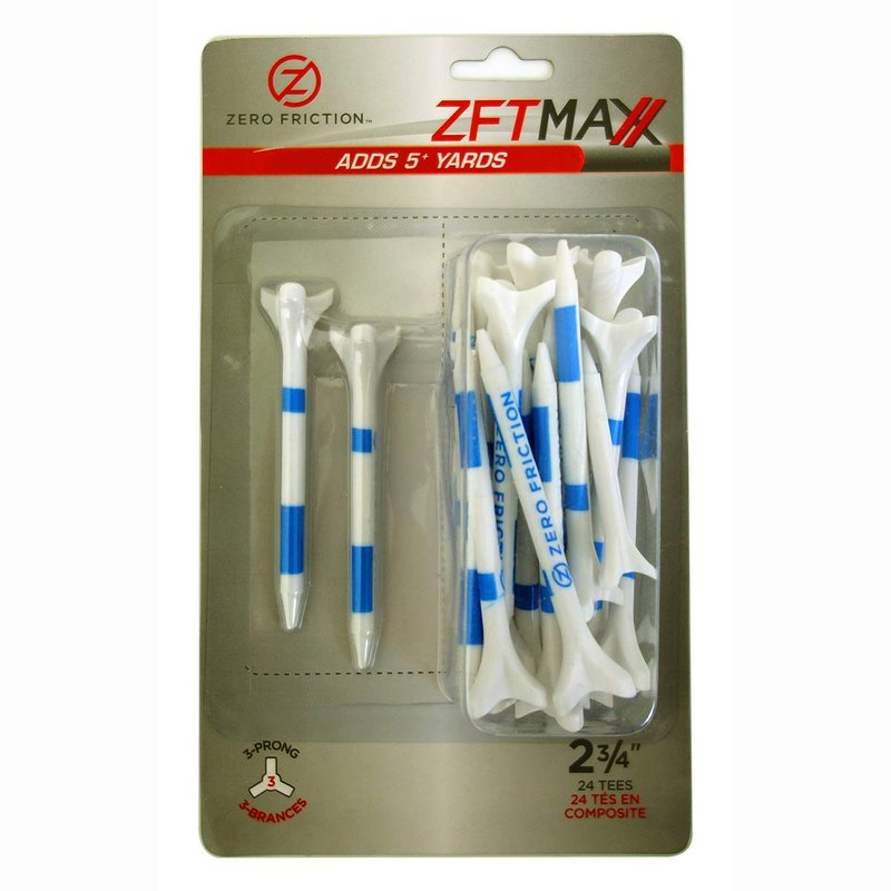 Zero Friction Unisex MAXX 3-Prong 2-3/4 Golf Tees, White/Blue (24 Tees/Pack) White