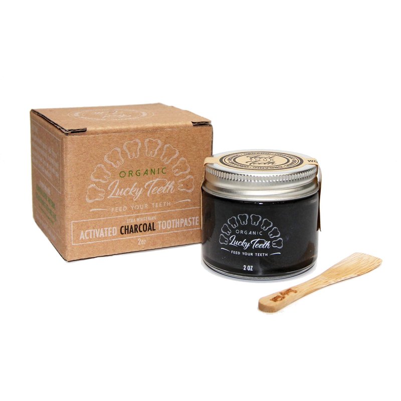 Zero Waste Glass jar Charcoal Toothpaste Xtra Whitening Toothpaste - by Lucky Teeth - All Natural, Organic, Remineralizing and Fortifying (2 oz Glass)